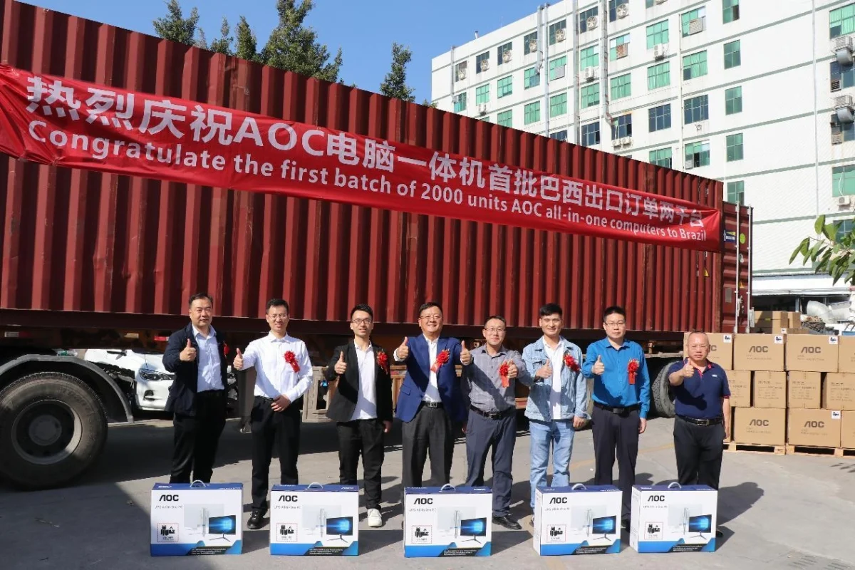 Recently, a celebratory event marking the export of AOC all-in-one PCs to overseas markets was held in Shenzhen. Distinguished guests in attendance included Ren Jingshun, Assistant General Manager of TPV Technology, Ren Lewen, Chairman of Century Jingshen Technology Co., Ltd., Zheng Xuejun, Sales Director of AOC’s PC Business Unit, as well as special invited clients from Brazil, Mongolia, and Hong Kong. This event signifies the remarkable success of the cooperation between TPV Technology’s AOC PC Business Unit and Century Jingshen Technology Co., Ltd., jointly propelling the overseas market expansion of AOC all-in-one PCs.