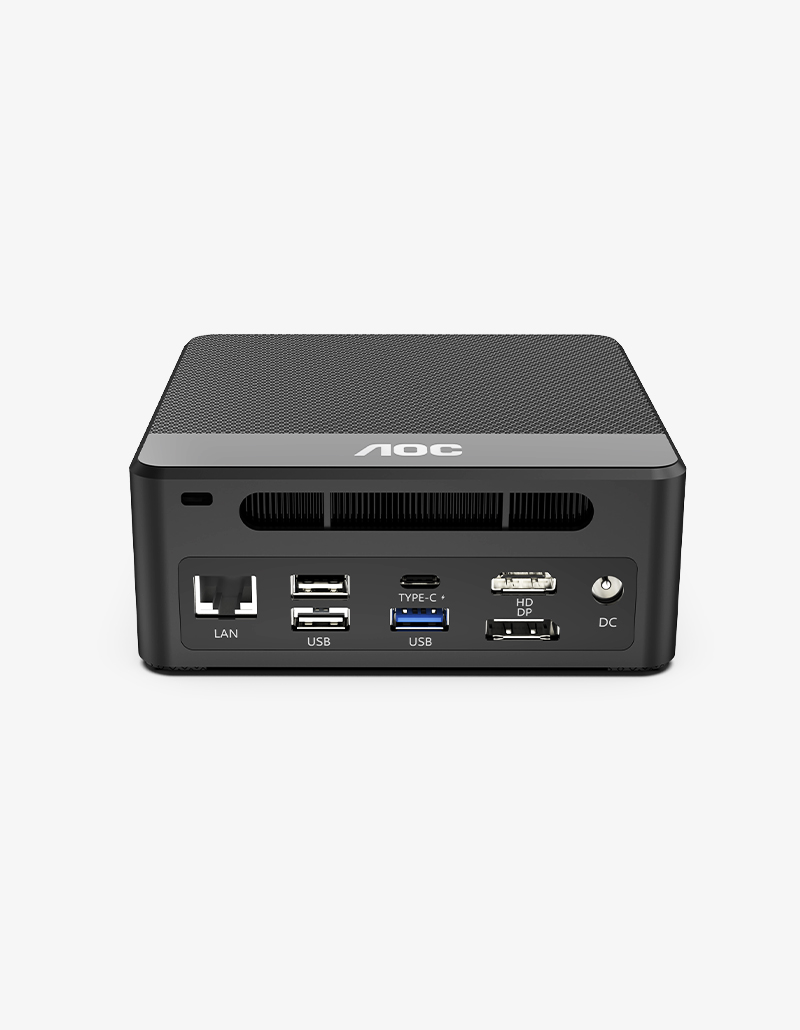 The AOC M002 Mini Cube Host features a compact body crafted from eco-friendly ABS material with a mirror finish. Its lightweight and portable design significantly saves desktop space, while it comes equipped with Intel Celeron N150 processor (or an optional 6th to 8th Gen Intel Core i5 processor) that balances performance and power consumption. Boasting a rich array of ports for enhanced expansion flexibility, it effectively boosts work efficiency.